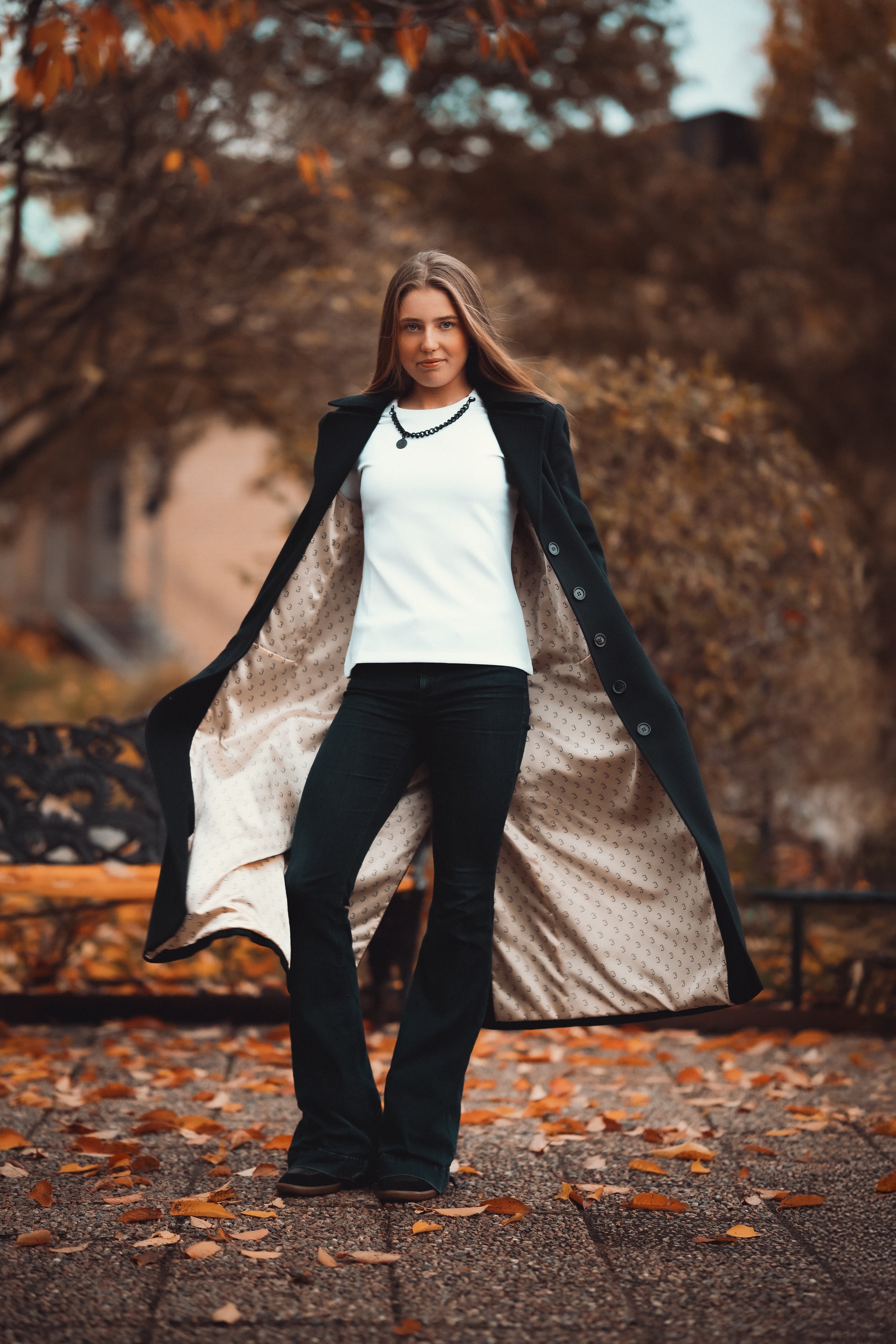 Långärmad casual topp med kedja för affärer, sport, fest och andra aktiviteter. Avtagbar kedja. Figursydd. Modellen bär stl S, byst 90 cm, axel till axel 40 cm, midja 70 cm och total längd 165 cm. Se storlekstabell för mer information.
